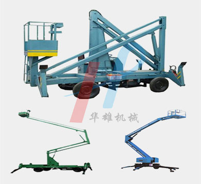 曲、折臂式升降機(jī)是多功能、多用途的作業(yè)裝置。通過大臂前端托架,可以快速安裝舉升裝置或載人平臺,實現(xiàn)物料舉升、起重吊裝和載人高空作業(yè)等功能,同時為擴(kuò)展作業(yè)裝置以及各種工作裝置的快速切換提供了接口。